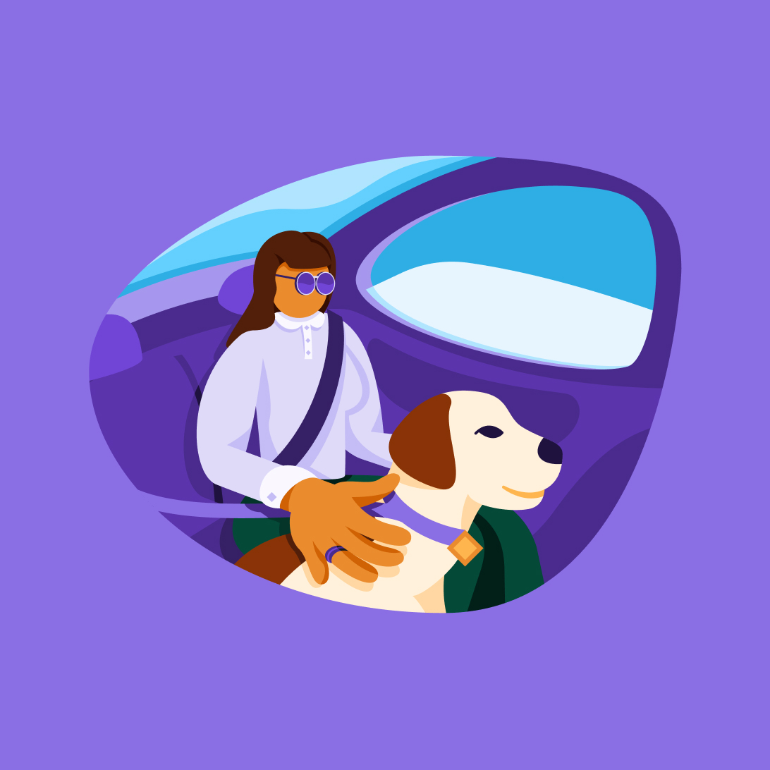 Recuerda que los perros guía siempre viajan a bordo con Cabify. Es importante para seguir ofreciendo un servicio de calidad y seguridad e incluso obligatorio en algunos países.