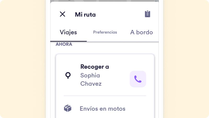 Una vez aceptes la solicitud, revisa siempre la sección “Mi Ruta”, luego dale al apartado “Viajes”, desliza hacia arriba y podrás encontrar aquí todos los detalles de tu envío: datos del cliente, opción a llamar, indicaciones y más.