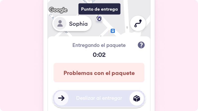 Si luego de 5 minutos e intentar comunicarte con el usuario nadie sale a recibir el paquete, pulsa ‘Problemas con el paquet’, luego selecciona la opción que más te acomode y pulsa ‘Llamar al remitente’ para que coordinen la devolución de este. ¿Cómo? Pulsa ‘Devolver el paquete al remitente’ y automáticamente la app te redirigirá al punto de origen para poder realizar la devolución.